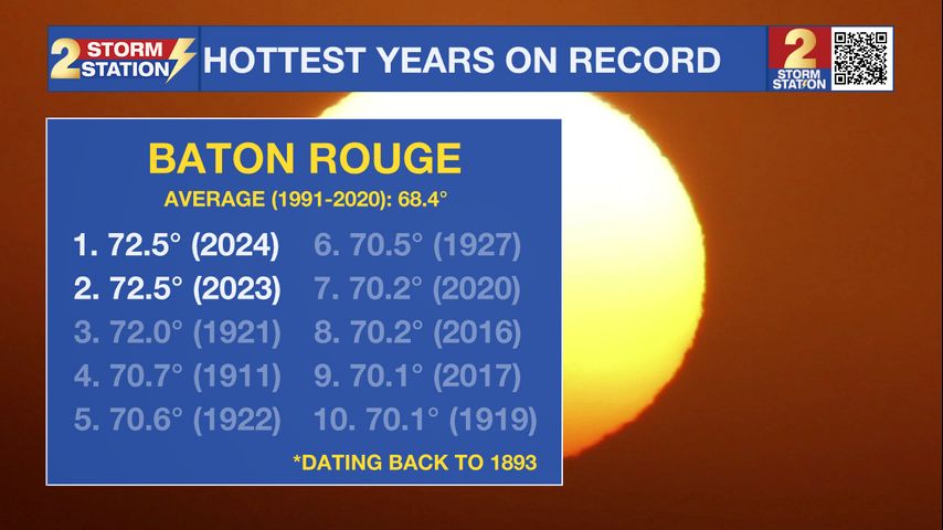 2024 ranks alongside 2023 as the warmest year on record for Baton Rouge