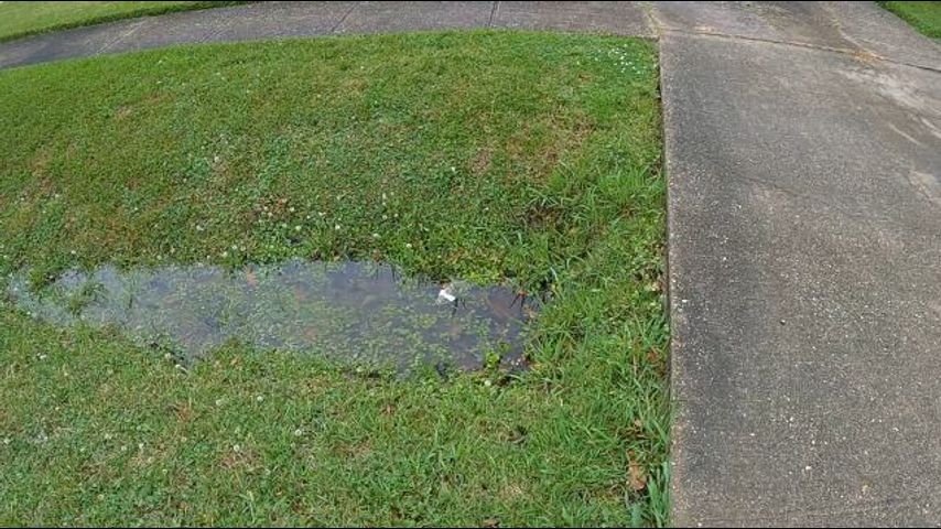 The ditch in front of his house sometimes backs up into his front yard. He says he can take days before the water drains. A few houses down, a pipe was crushed and it prevents the water from draining the way it should.