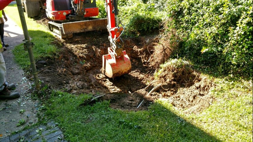 The City-Parish went through LA One Call and marked underground lines prior to digging. Utility and telephone lines were moved and a crew sealed a leaking drainage pipe Wednesday. Thursday, the crew filled in the hole with sand and packed it in with dirt.