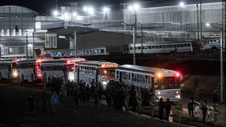 PHOTO: Guard gives directions to the inmates allegedly linked to criminal organizations at CECOT, Photo Date: 03/16/2025
