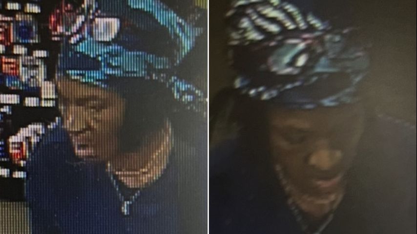 In photos provided by the department, the person can be seen wearing a blue bandana and navy blue top.