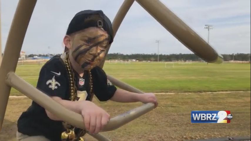 In the video is her two children decked out in Saints gear. Her son Noah has his face painted in black and gold and her daughter lays in the grass on a blanket. Noah does an assortment of dance moves throughout the video as he sings some of the song.