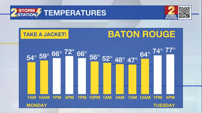 Clouds linger early this week across South Louisiana, but a gradual warming trend is on the way. While rain chances stay low for now, increasing winds and rising water levels along the coast will become the bigger story.