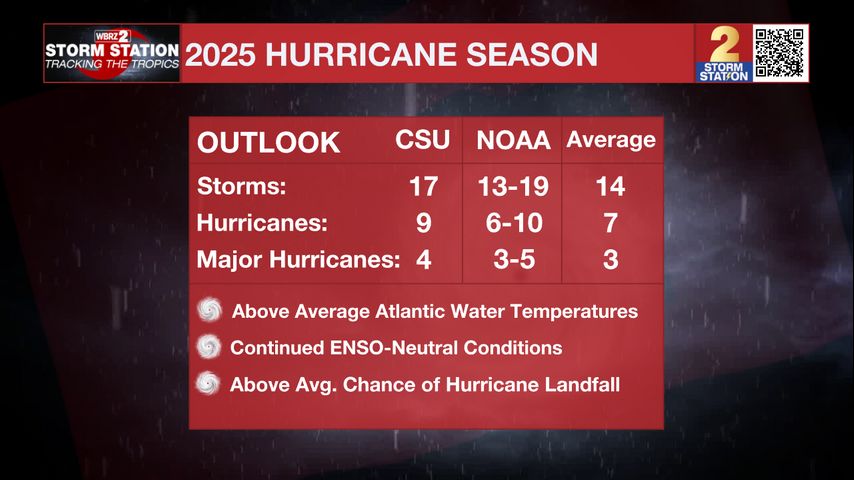 The Storm Station likes to remind that “it only takes one hurricane making landfall to make it an active season for you,” so prepare accordingly. There have been seasons with a lot of storms but few impacts to land and seasons with few storms but a lot of impacts to land. For more on the season ahead and preparedness, visit wbrz.com/weather and click on the hurricane center.