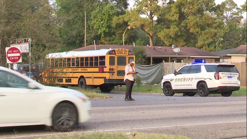 BATON ROUGE - One person was taken to a hospital after a motorcycle reportedly crashed into a school bus Tuesday afternoon.