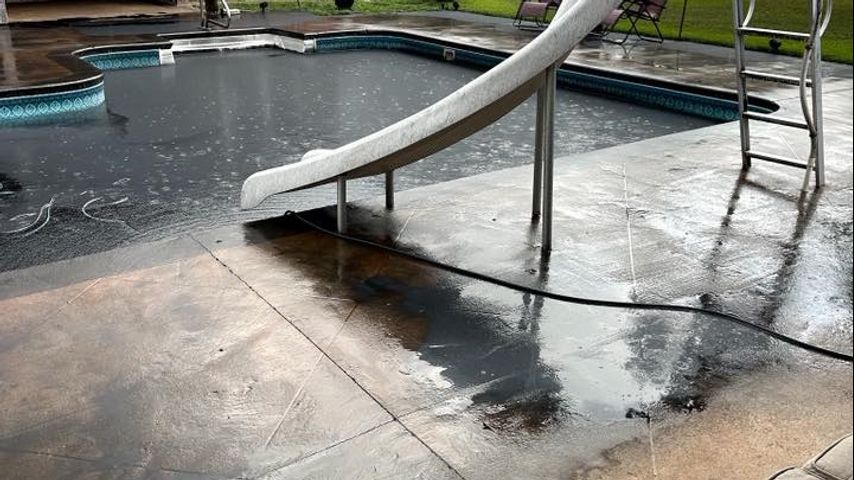 Cars, driveways, pools, turned black after raining soot or oil this afternoon and evening around Roseland. This comes after a large fire erupted, emitting lots of black smoke. The raining soot, also called "Black Rain", has a meteorological explanation.
