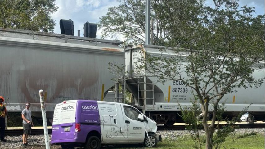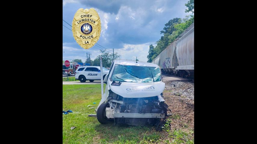 Train hits van just off US 190 in town of Livingston; one brought to hospital via Air Med