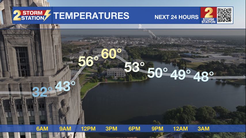 What to look out for: Early morning cold Tuesday could still impact sensitive plants and outdoor pets, particularly north of Baton Rouge. Fire safety remains important during chilly mornings as space heaters and fireplaces are used more frequently.