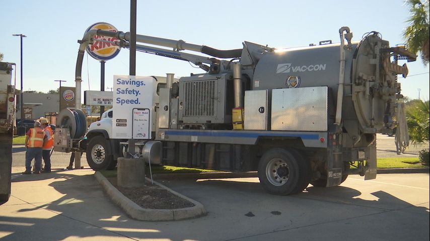 DENHAM SPRINGS - A vacuum truck spent a few hours Wednesday sucking out debris from drainage pipes at a busy Livingston Parish intersection.