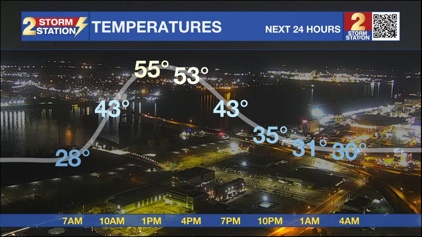 Today and tonight: We’re starting cold, but not as harsh as the past few mornings, with early temperatures in the upper 20s to low 30s before sunrise. Sunshine dominates through the day, allowing temperatures to recover into the upper 40s to near 50 by afternoon — still below normal, but a noticeable improvement. Winds are lighter, making the cold more manageable. Clear skies return Wednesday night, with lows dipping back into the upper 20s and low 30s across much of the area.