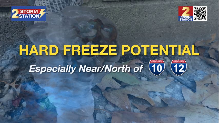 Up Next: Another hard freeze is on the table along and north of I-10/12 on Friday morning. As air temperatures fall into the mid-20s again, expect a repeat of wake-up wind chills in the teens and 20s. Another Cold Weather Advisory will be in effect from 9 p.m. Thursday to 10 a.m. Friday to account for this. A partly sunny sky on Friday will help temperatures brush 50°. There will be less of a wind chill factor by then, but it will still be chilly.