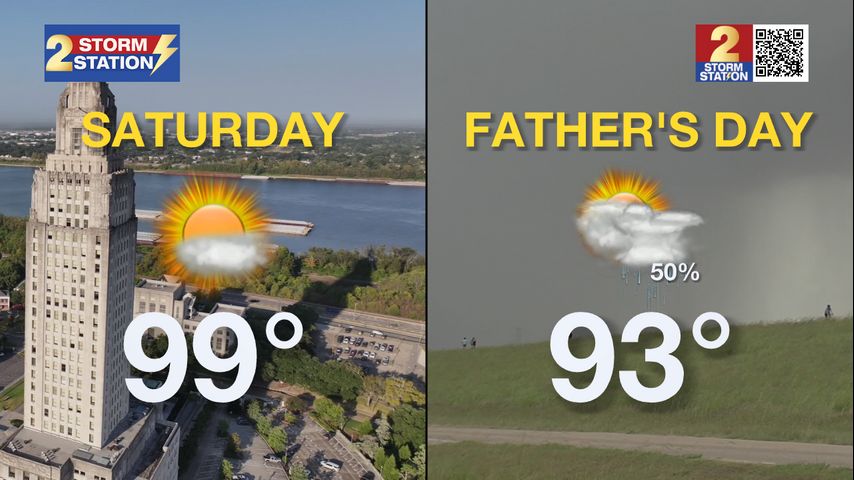 Up Next: Be prepared to sweat for the first half of Father's Day weekend. The continuation of the sunny and dry pattern will result in temperatures climbing even higher. The latest Storm Station forecast calls for highs in the upper-90s on Friday and Saturday, which is a few degrees shy of the record value (100°) for both days. The forecast takes a different course beginning on Father's Day as a tropical surge of moisture takes aim at our part of the Gulf coast. This could result in a period of unsettled weather, with a few rounds of showers and a notable dip in temperatures into next week. Details are far from set in stone at this point, so be sure to stay in touch with the Storm Station as we get closer.